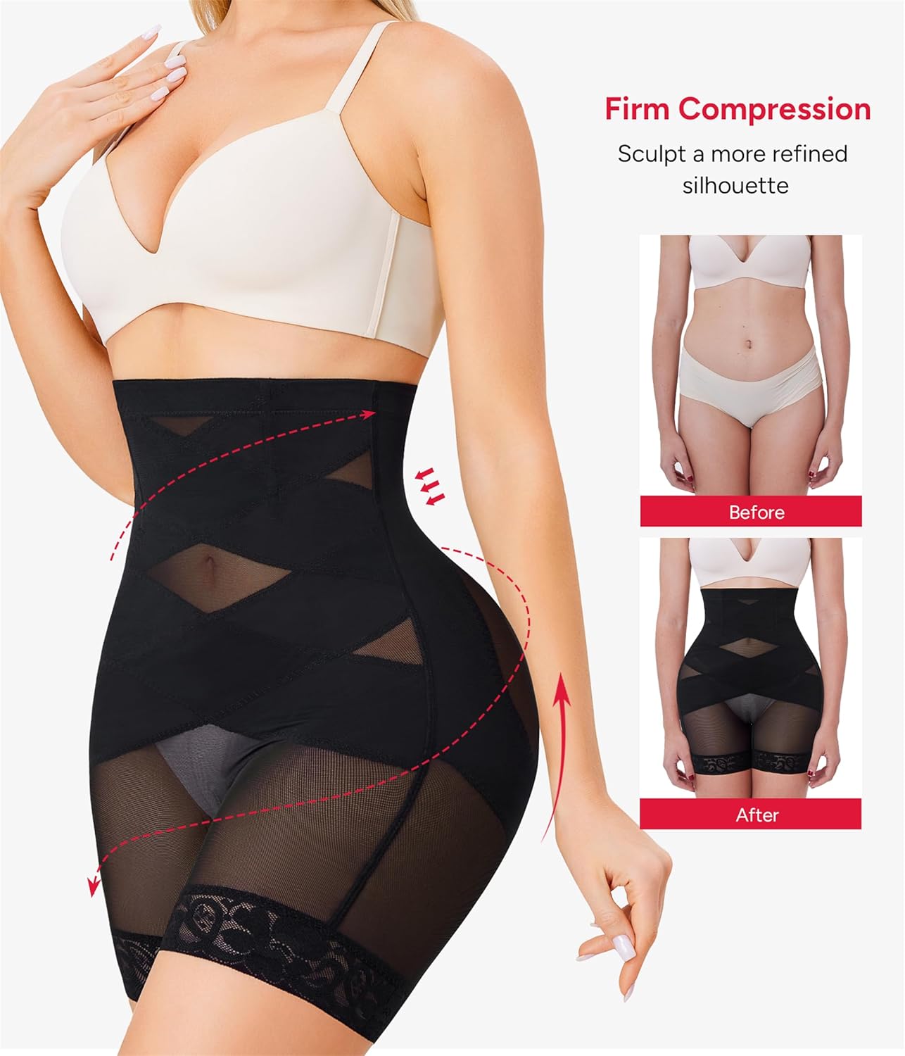 Targeted Shaping: Provides firm support to the midsection and thighs