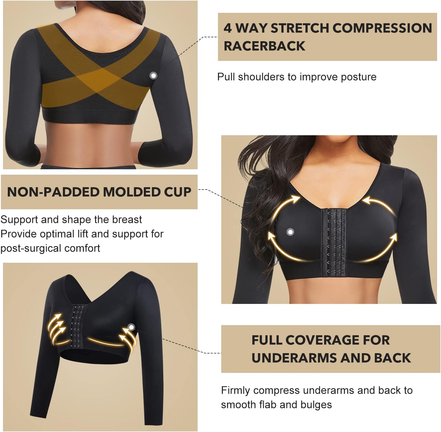 Posture Support: The posture improving arm sleeve design supports your back and shoulders, helping to improve your overall posture.