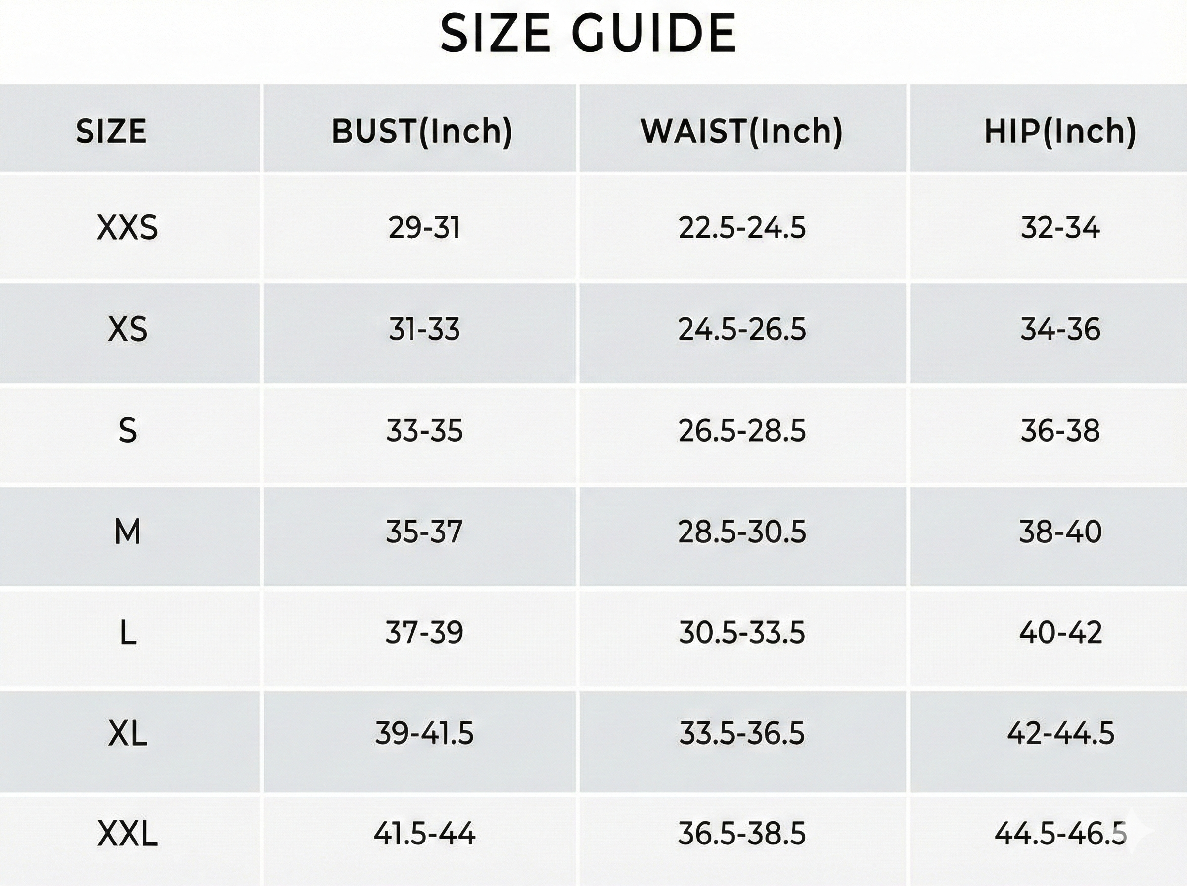 Size Chart(inches):