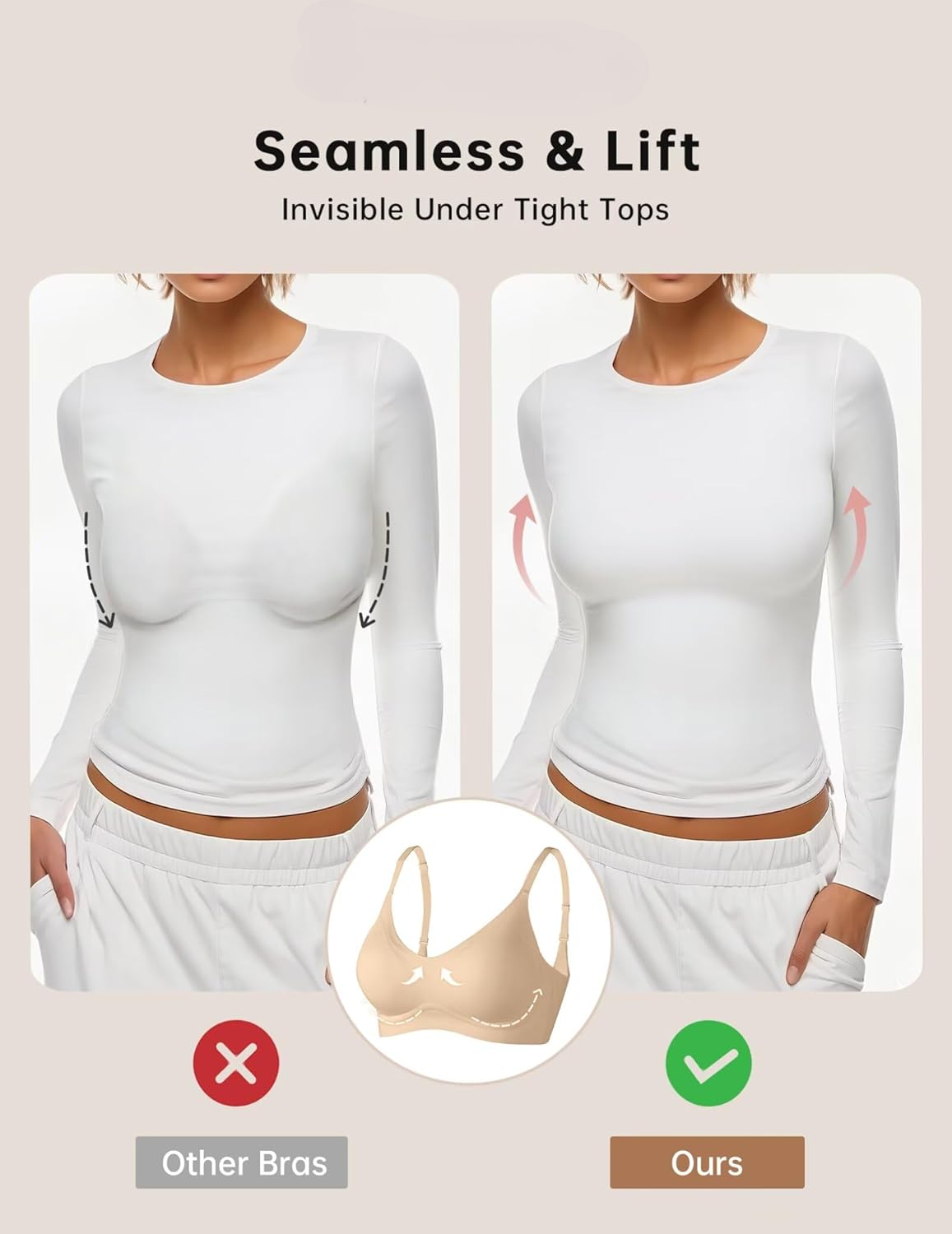 The seamless V-neckline ensures invisibility under clothing, delivering a sleek, minimal appearance with no visible lines or bulk.