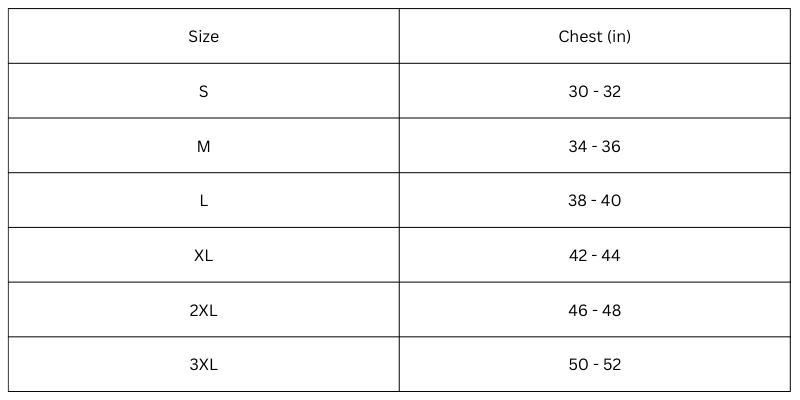 Size Chart(inches):