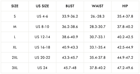 Size Chart: ( Inches )