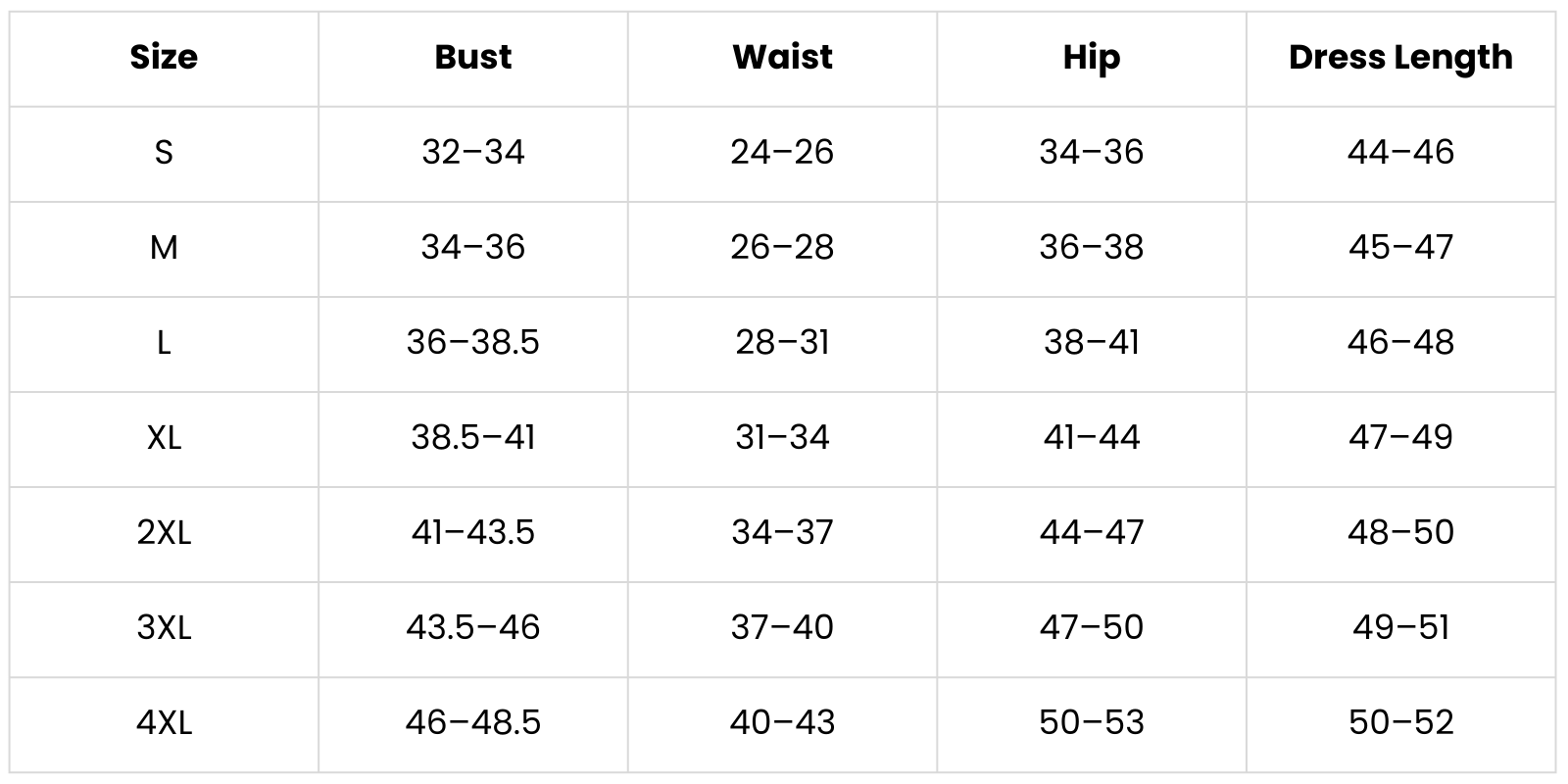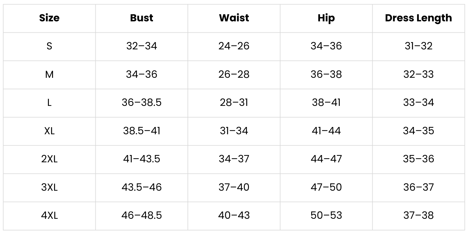 Size Chart(inch):