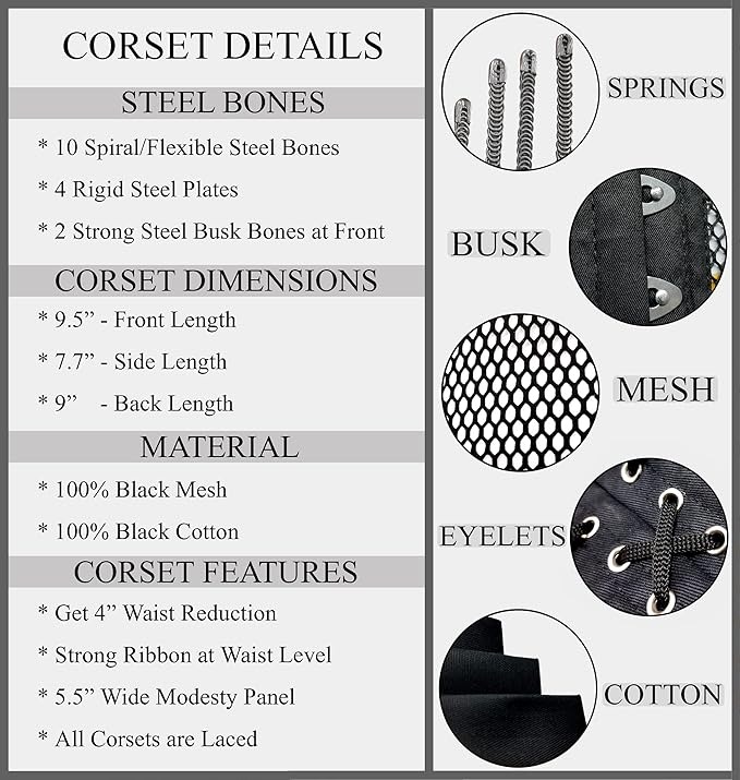 - The Heavy Duty Mesh Corset suits themed events such as costume parties, cosplay gatherings, and performances.