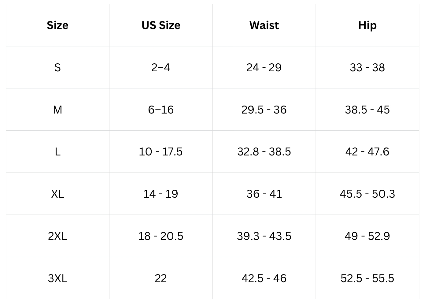 Size Chart(inch):