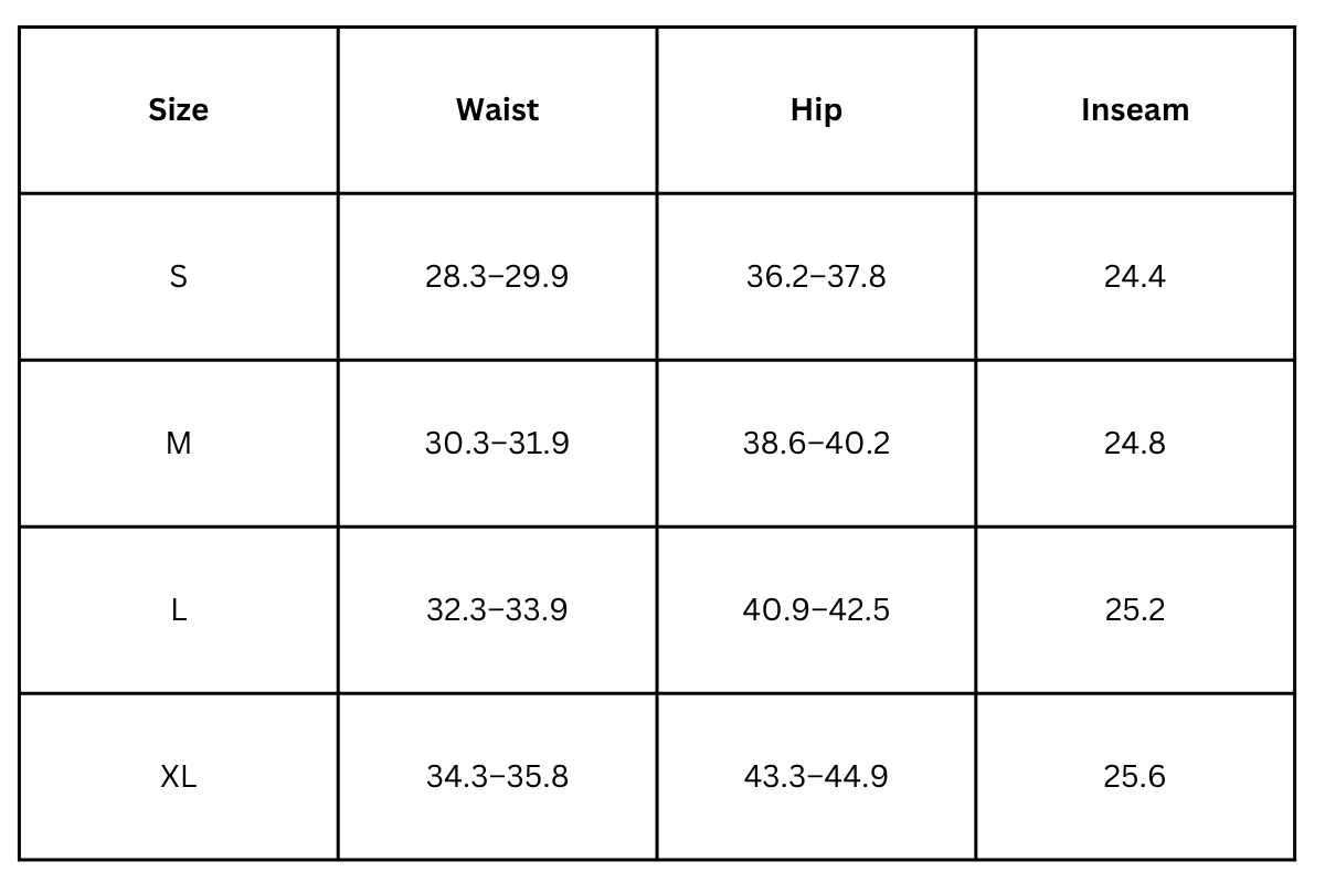 - Pockets: two side pockets (outer thigh)