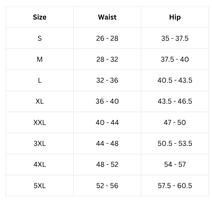Size Chart (inches):