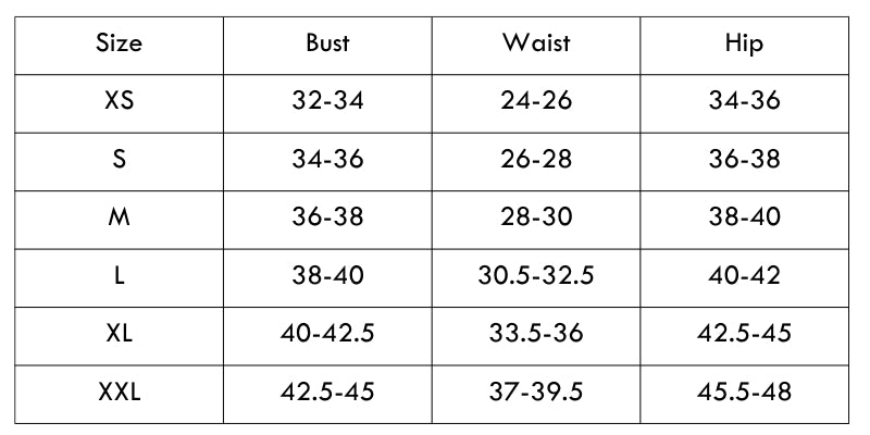 Size Chart(inch):