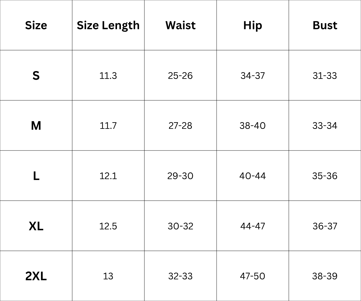 Size Chart (IN):