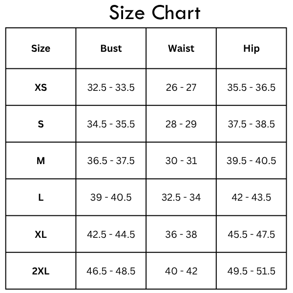 Size Chart (inches):