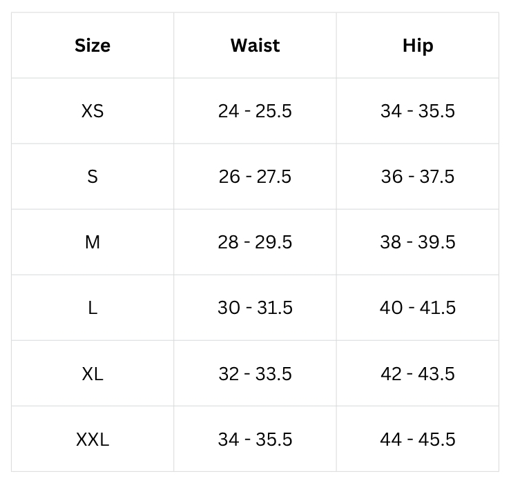 Size Chart (inches):